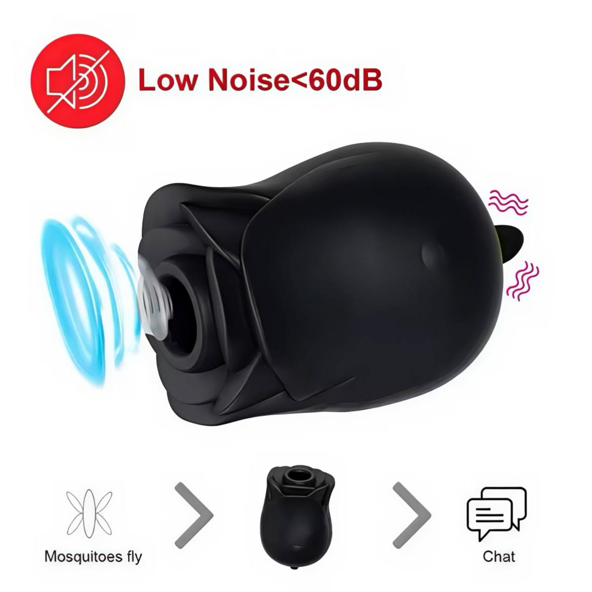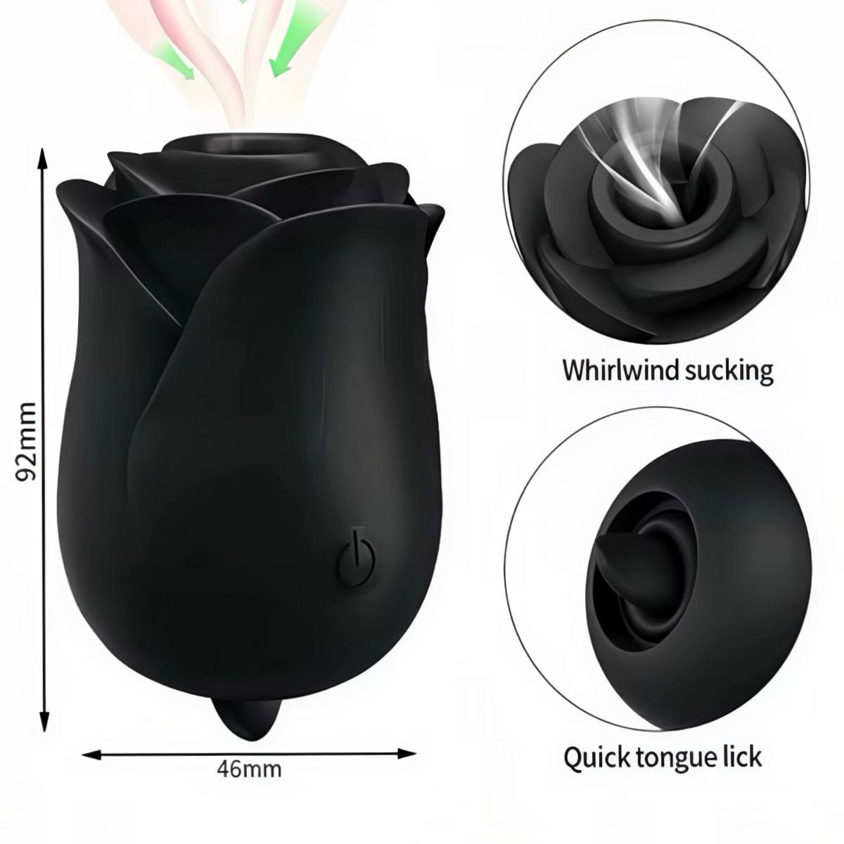 Вібратор у форматі чорної троянди створений для точкової кліторальної стимуляції. Пристрій поєднує вакуумний принцип дії з вібраційним впливом. Прозора колба використовується для захисту та акуратного зберігання.