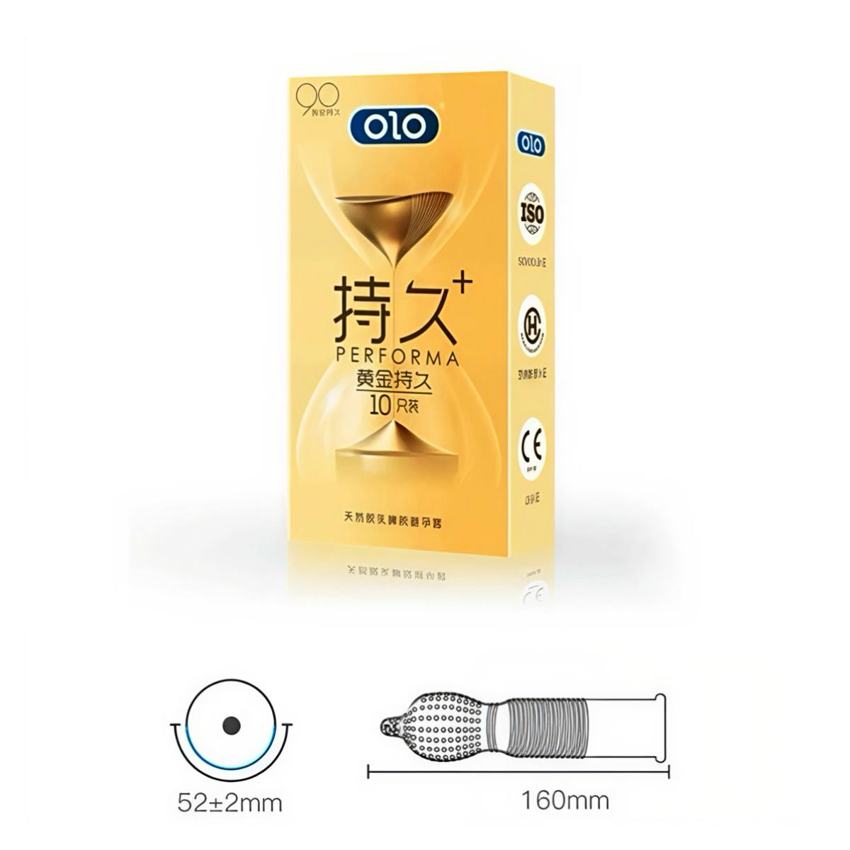 Презервативи OLO Performa — це модель із поєднанням рельєфної поверхні та пролонгуючої змазки. На відміну від варіантів із локальною текстурою, тут точки розташовані по більшій частині довжини, що забезпечує більш рівномірний контакт під час використання.