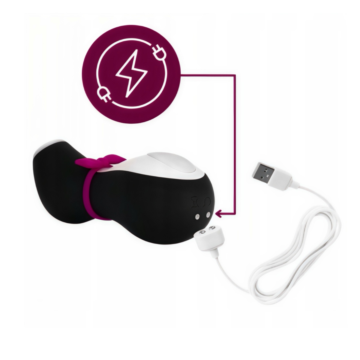Вібратор створює хвильові імпульси, які м’яко всмоктують та стимулюють клітор без прямого тертя. Вібрація додає глибших відчуттів, що можна комбінувати залежно від бажаної інтенсивності. Підходить для швидкого збудження, чуттєвої прелюдії або повноцінного соло-сеансу задоволення.