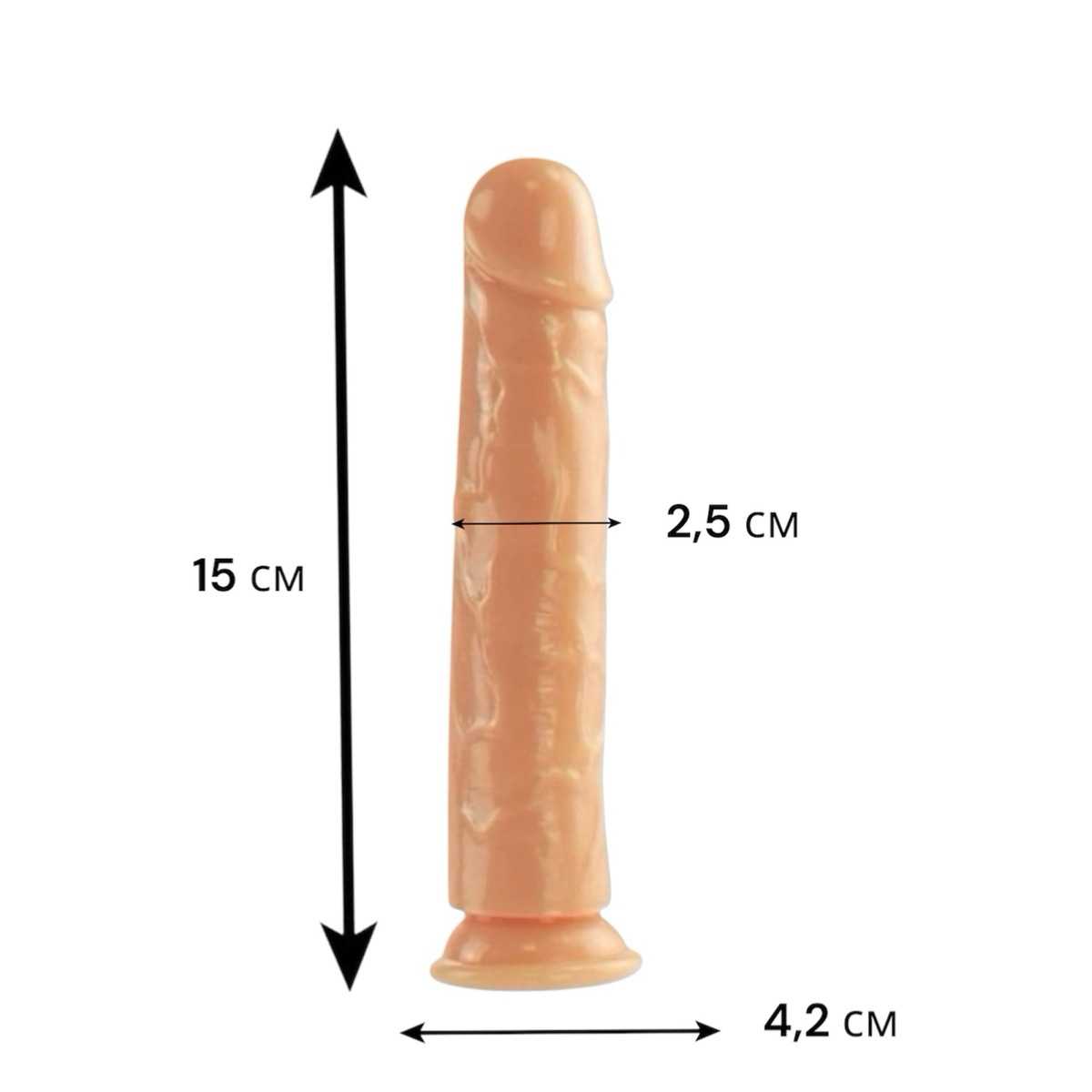 Ця модель поєднує реалістичний вигляд і гнучкий матеріал, що робить її комфортною навіть для користувачів без досвіду. Акуратний рельєф і чітко виділена голівка дають відчуття природності під час введення, а присоска розширює можливості використання без додаткових зусиль.